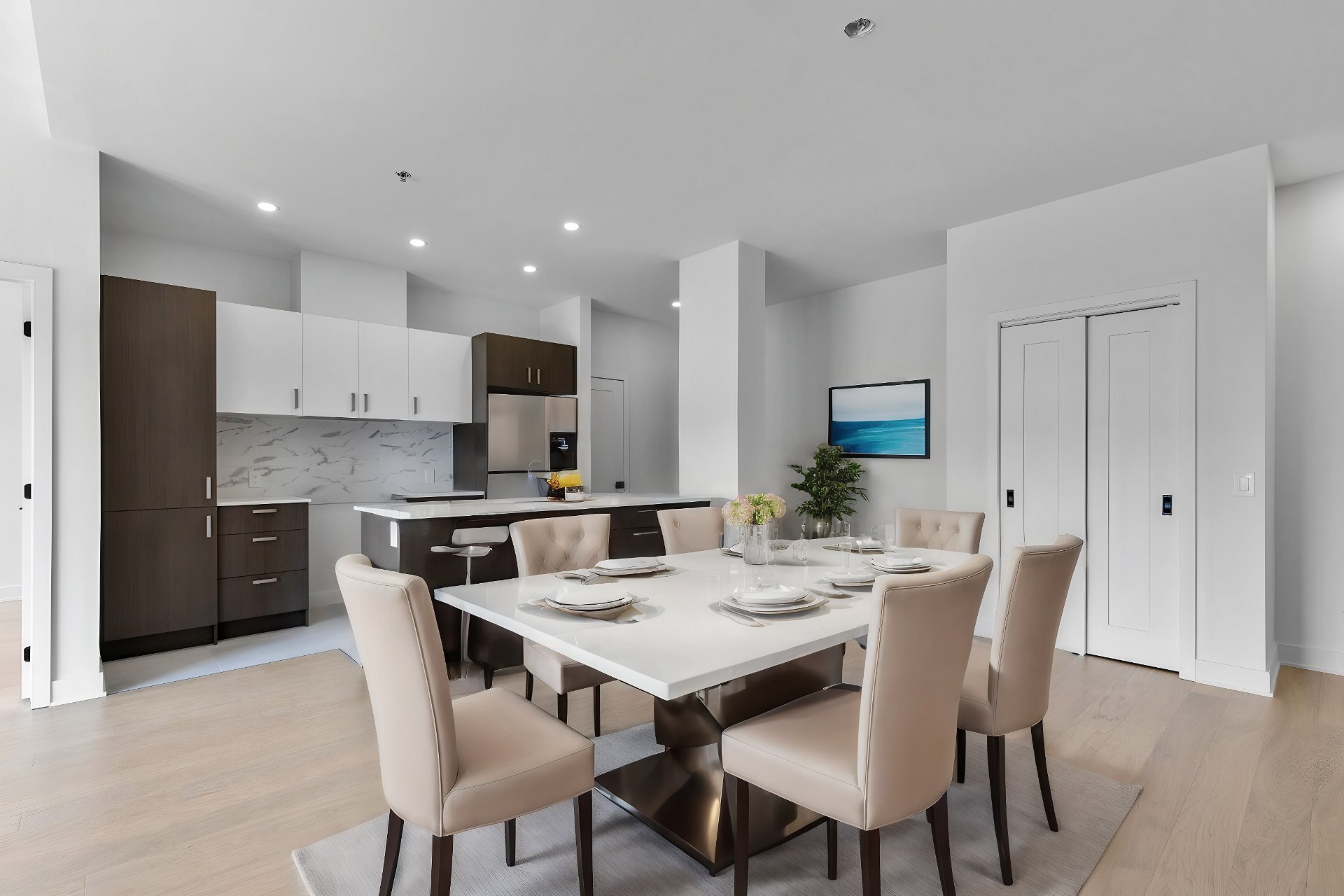 * Modern, open-concept kitchen, dining, and living areas